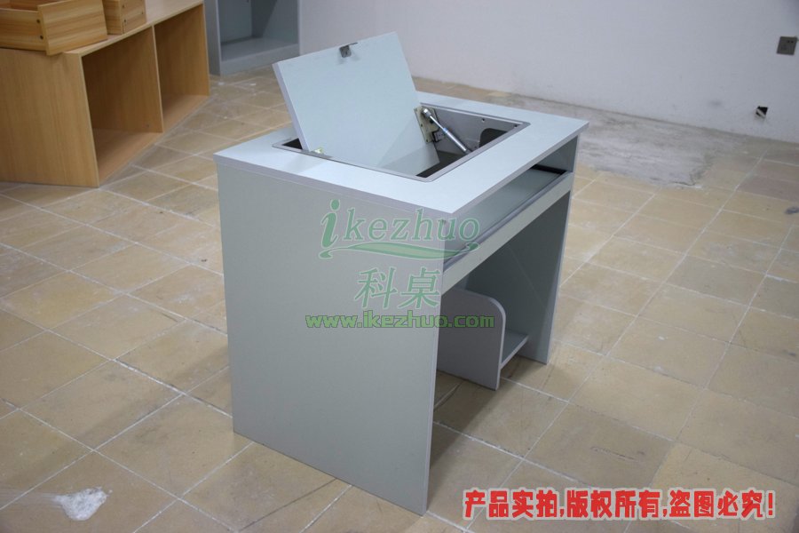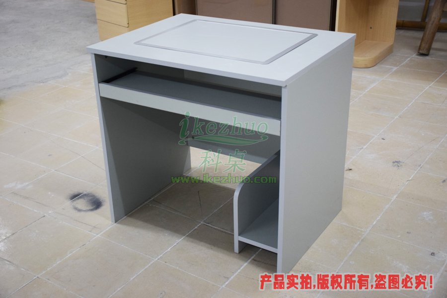 单人位带边框翻转电脑桌K087产品名称单人位带边框翻转电脑桌产品型号K087产品尺寸800600760mm产品材质密度板、夹板产品颜色浅灰色-麻面(有其他颜色可?。┌宀暮穸?8mm(面板可加厚)开孔尺寸480x380mm(19寸)可装显示器19寸液晶屏显示器科桌翻转电脑桌主要应用于各种大型会