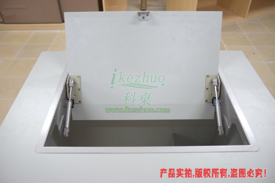 当需要使用显示器时轻按前端桌面板隐藏在桌子内部的显示器会自动从桌子下面升到桌面翻转到合适角度。当不使用显示器时,可手动按下显示器翻盖面板至桌面平整,显示器自动锁住隐藏在桌子内与桌面保持平整一致。起到防尘,防盗,保持桌面平整美观。使用方便,手动控制,翻转自如。