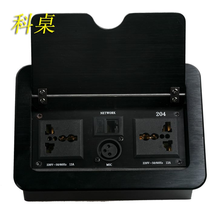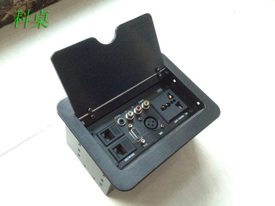 翻盖多功能桌面插座是目前市场上较为新款、实用的、美观的多功能桌面线盒,此款多功能桌面线盒适用于办公会议桌、班台、洽谈桌面、个人办公桌等。作为会议办公桌面线盒,本系列的翻盖多功能桌面插座面板采用高质量铝合金材质,面板表面采用阳极化精密度铝拉丝处理,手感光滑细腻,外观精美高档,可以很容易的安装嵌入到任何会议桌面任何位置不影响桌面整体效果。